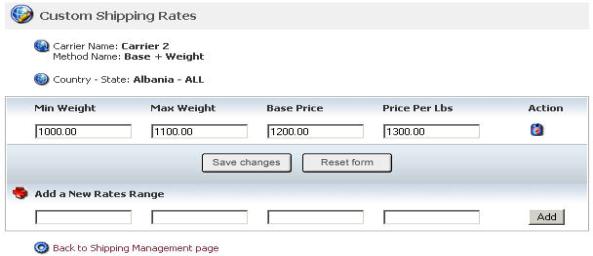 The Custom Shipping Rates page opens, as shown in the Figure 6-29-1 below, where you can edit the shipping rates range.